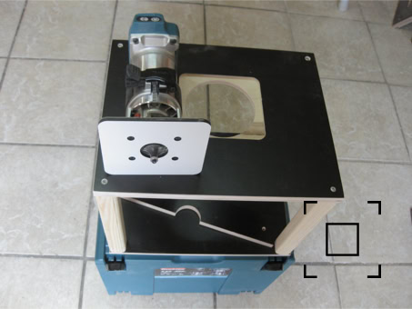 Sie müssen den Frästisch nur noch zusammenschrauben und mit einer Schraubzwinge auf der Werkbank befestigen. Original ABS Platten gegen die erworbene austauschen und die Stichsäge - Fräsmaschine von oben in die Platte einlegen. Eine weitere Befestigung ist nicht nötig, da die Maschine spielfrei in der Siebdruckplatte liegt.
