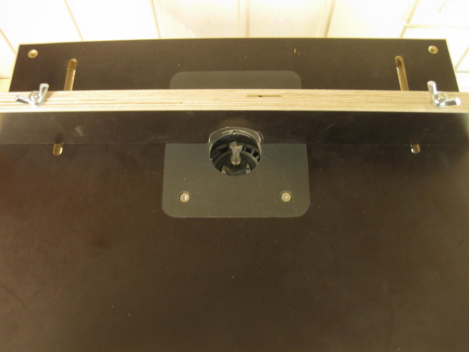 Original-ABS-Platte gegen die erworbene Austauschen, dann die Fräsmaschine von oben in die Platte einlegen. Die gewünschte Fräserhöhe lässt sich bequem von oben mit einem Inbusschlüssel einstellen.