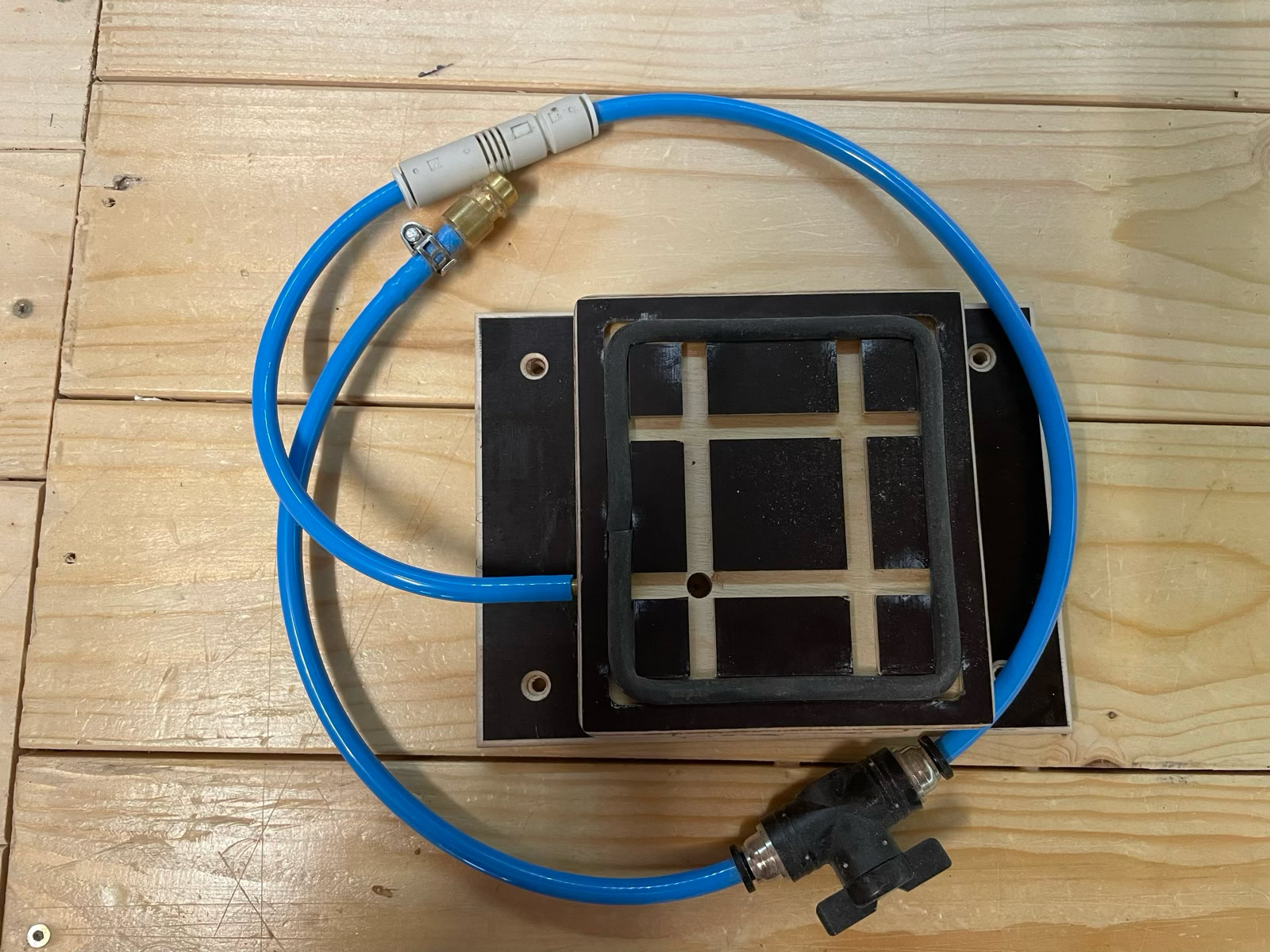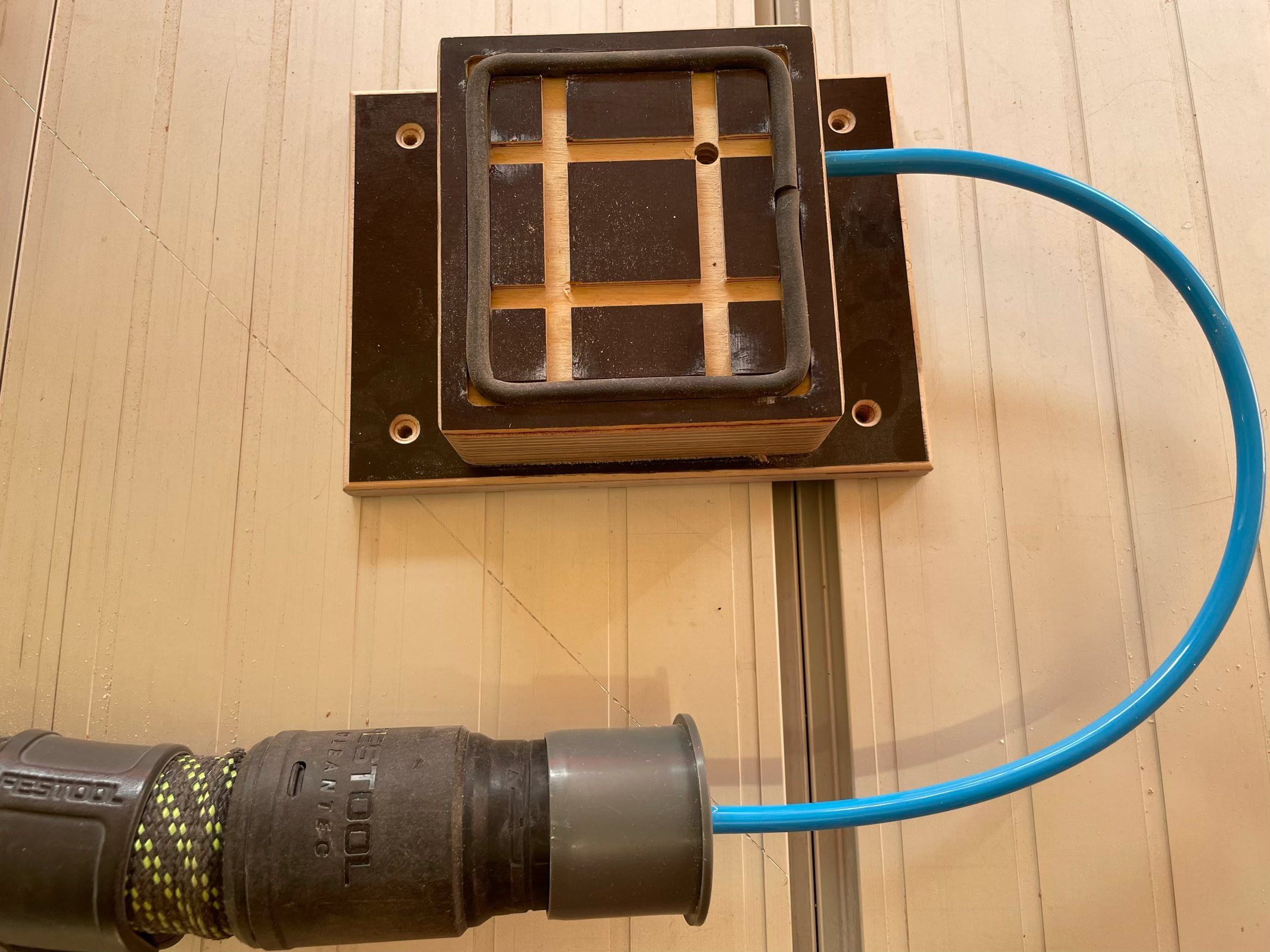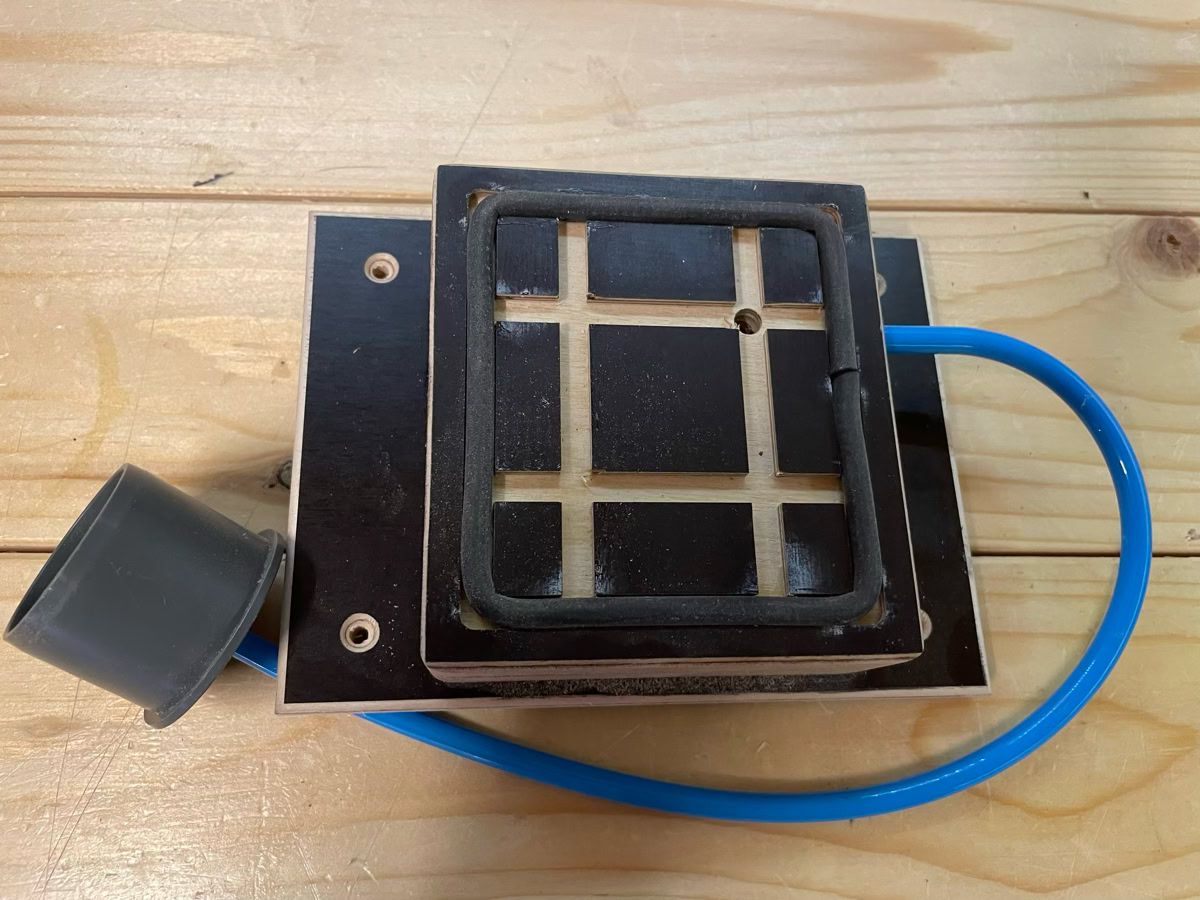 Eine Vakuumpumpe haben wohl die wenigsten in der Werkstatt, da kann man die Tische am effektivsten mit betreiben.