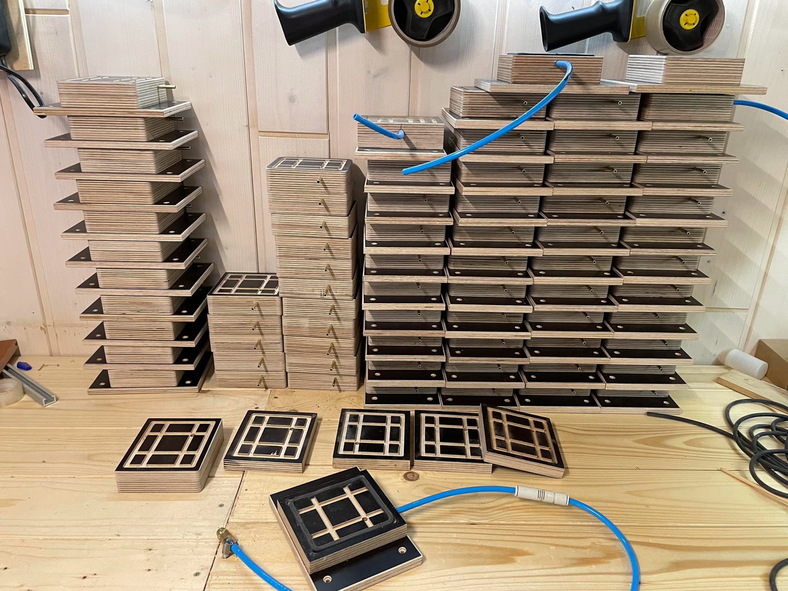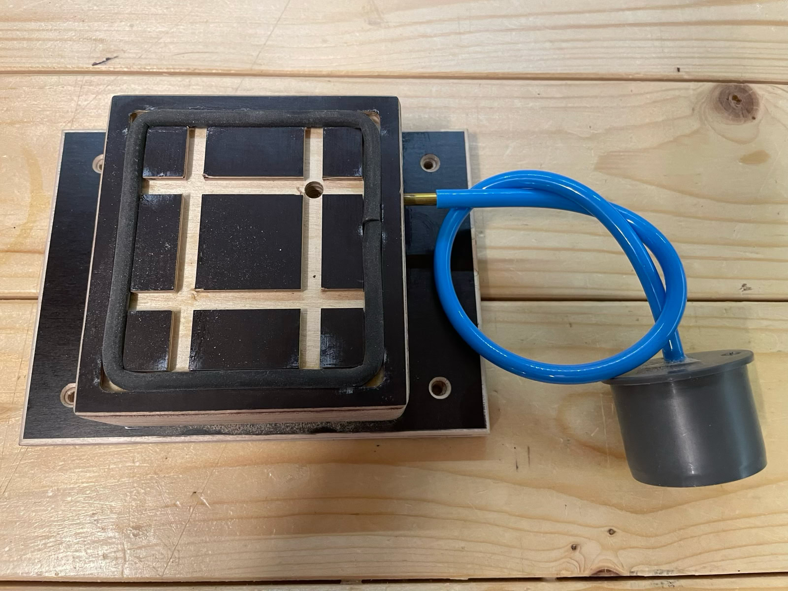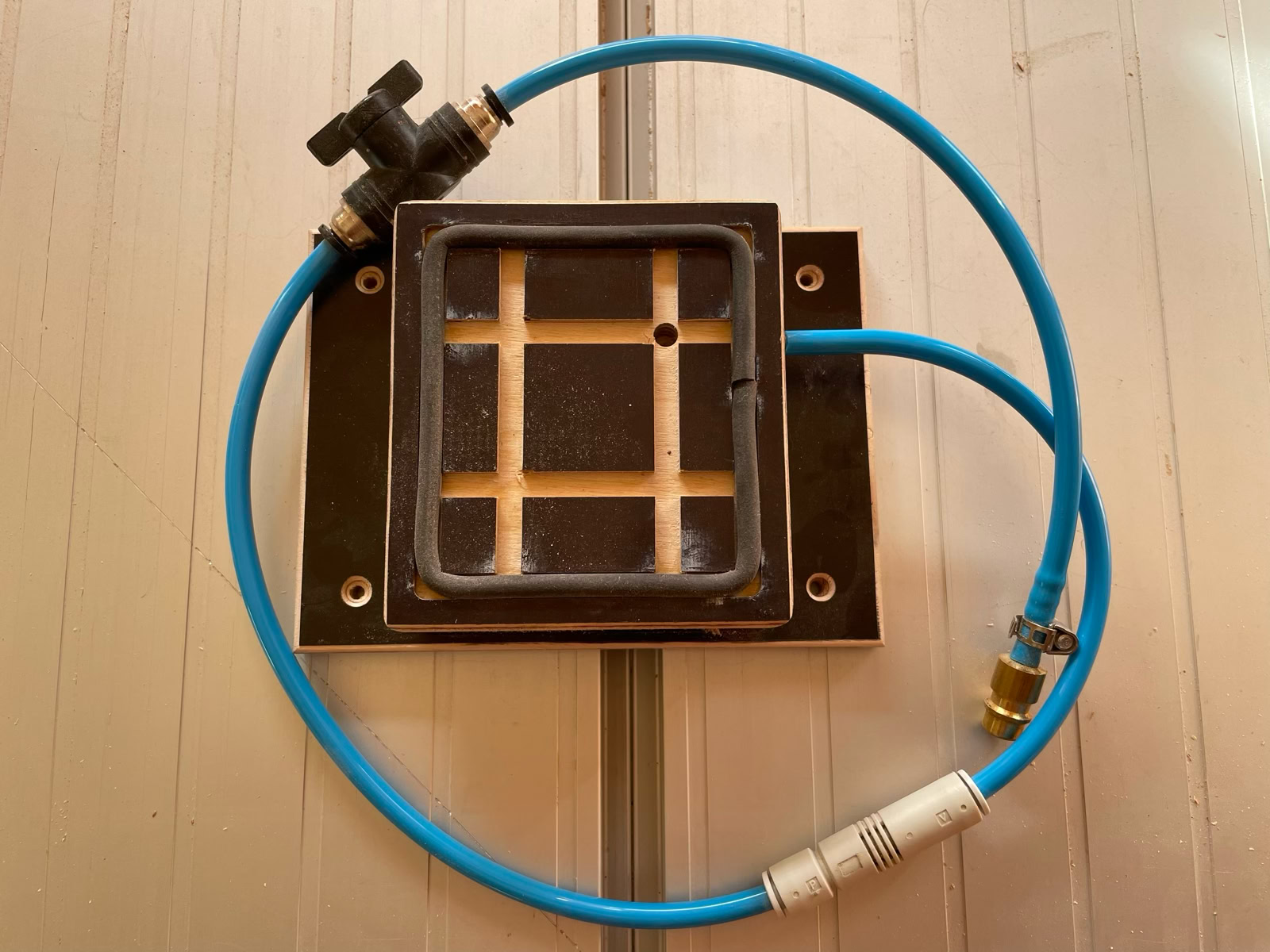 Eine Vakuumpumpe haben wohl die wenigsten in der Werkstatt, da kann man die Tische am effektivsten mit betreiben.