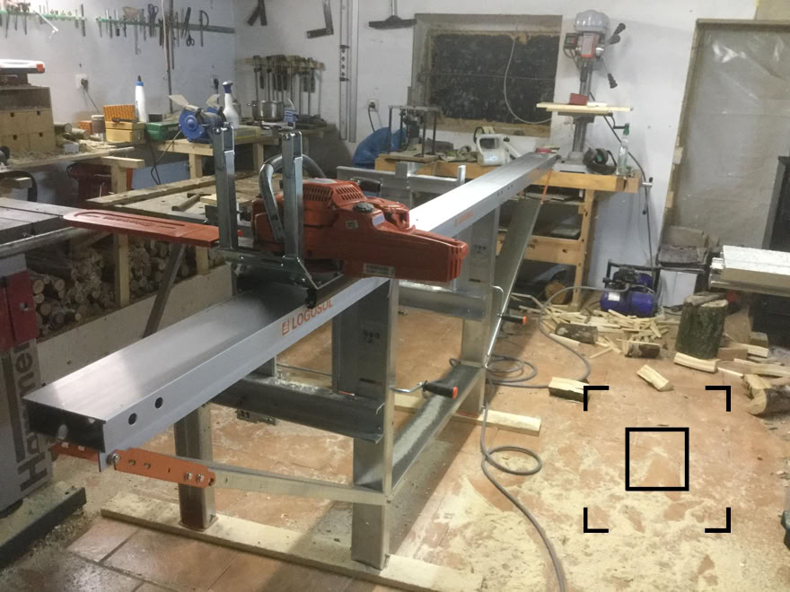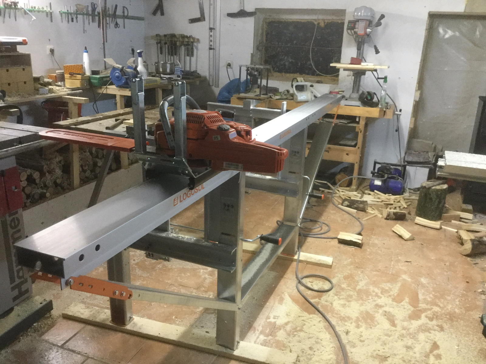 Mein Logosol Sägewerk um Baumstämme aufzutrennen.